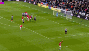 第48分钟,戈登左路拿球内切到禁区,被B费放倒裁判判罚点球,戈登主罚点球球进,纽卡1-0曼联。