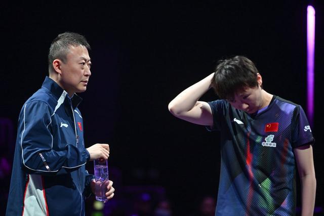 第三局,王曼昱0:3落后,马琳指导叫下暂停。暂停归来,王曼昱依旧没能找回状态,以3:11再输一局。